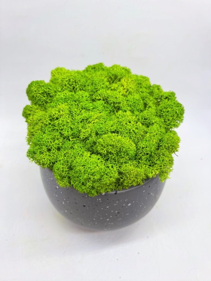 Betónová dekorácia s lišajníkom 15cmModerný kvetináč so stabilizovaným lišajníkom. Elegantná prírodná dekorácia bez údržby, vhodná do obývačky, kancelárie aj na stôl.