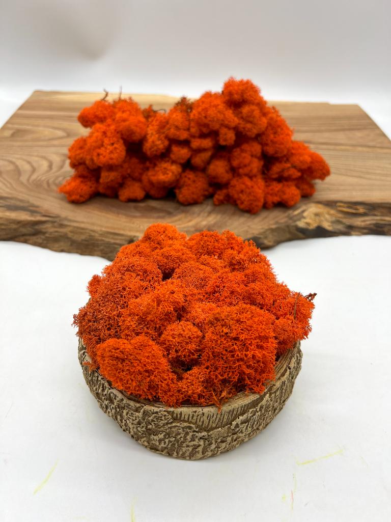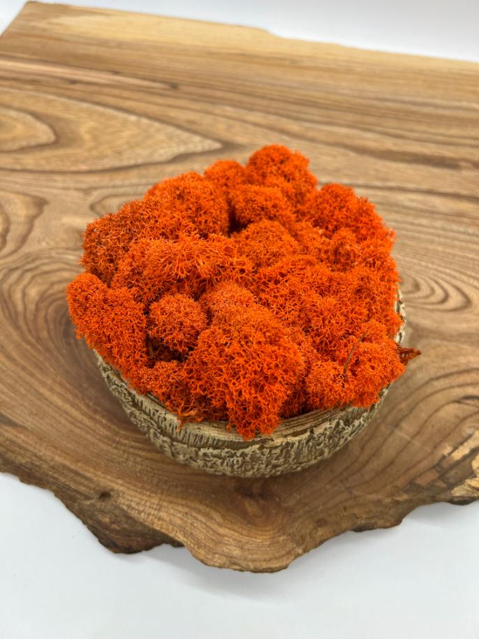 Stabilizovaný lišajník oranžovej farby prémiovej kvality. 100% prírodný produkt. Ku každej objednávke do 1kg pridávame 5% navyše ako darček.
