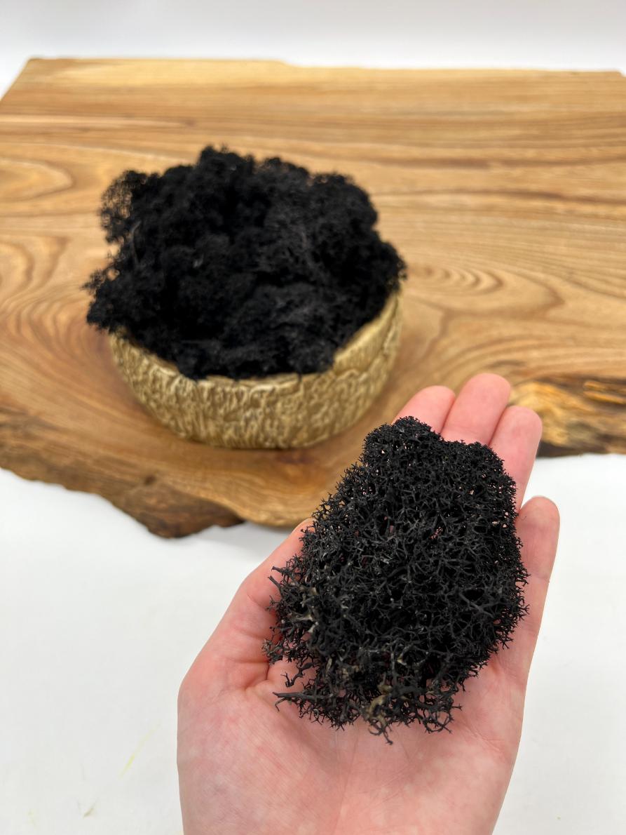 Stabilizovaný lišajník čiernej farby prémiovej kvality. 100% prírodný produkt.